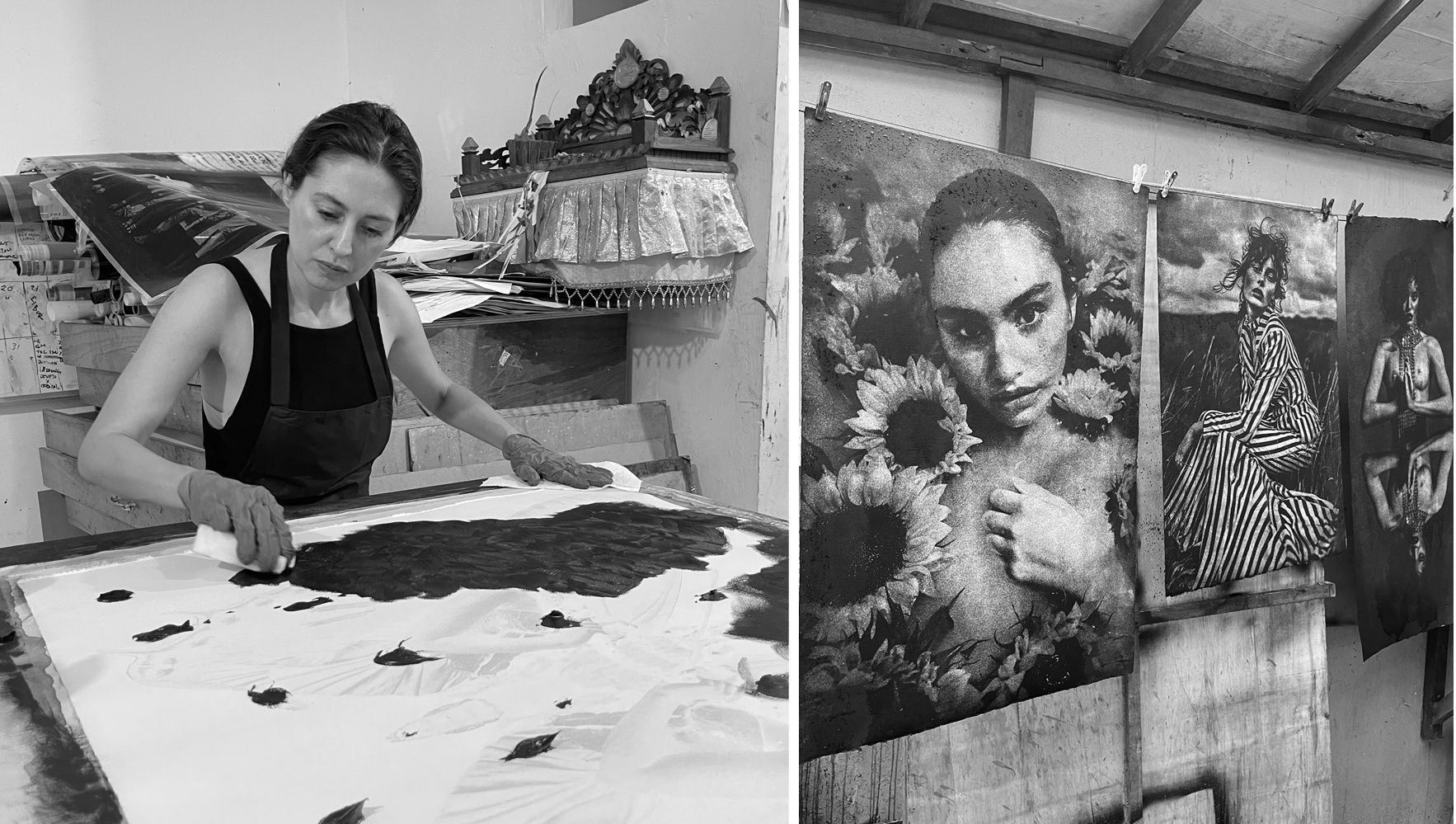 While traveling through Indonesia, Mila Alexander discovered the Gumoil technique—a rare and expressive process that fuses photography with painting. She undertook a residency at Gumoil Studios in Bali, where this latest collection of art was born.